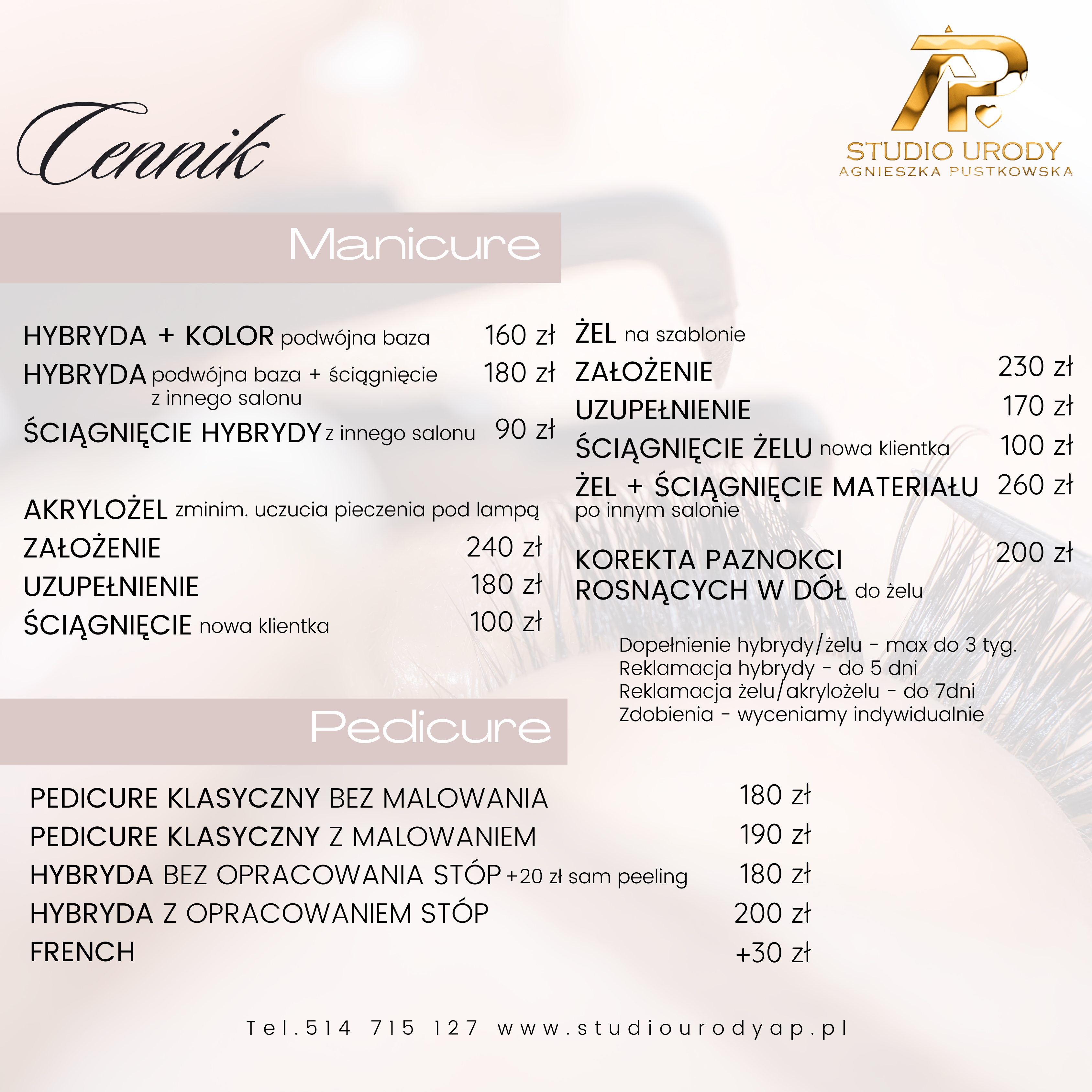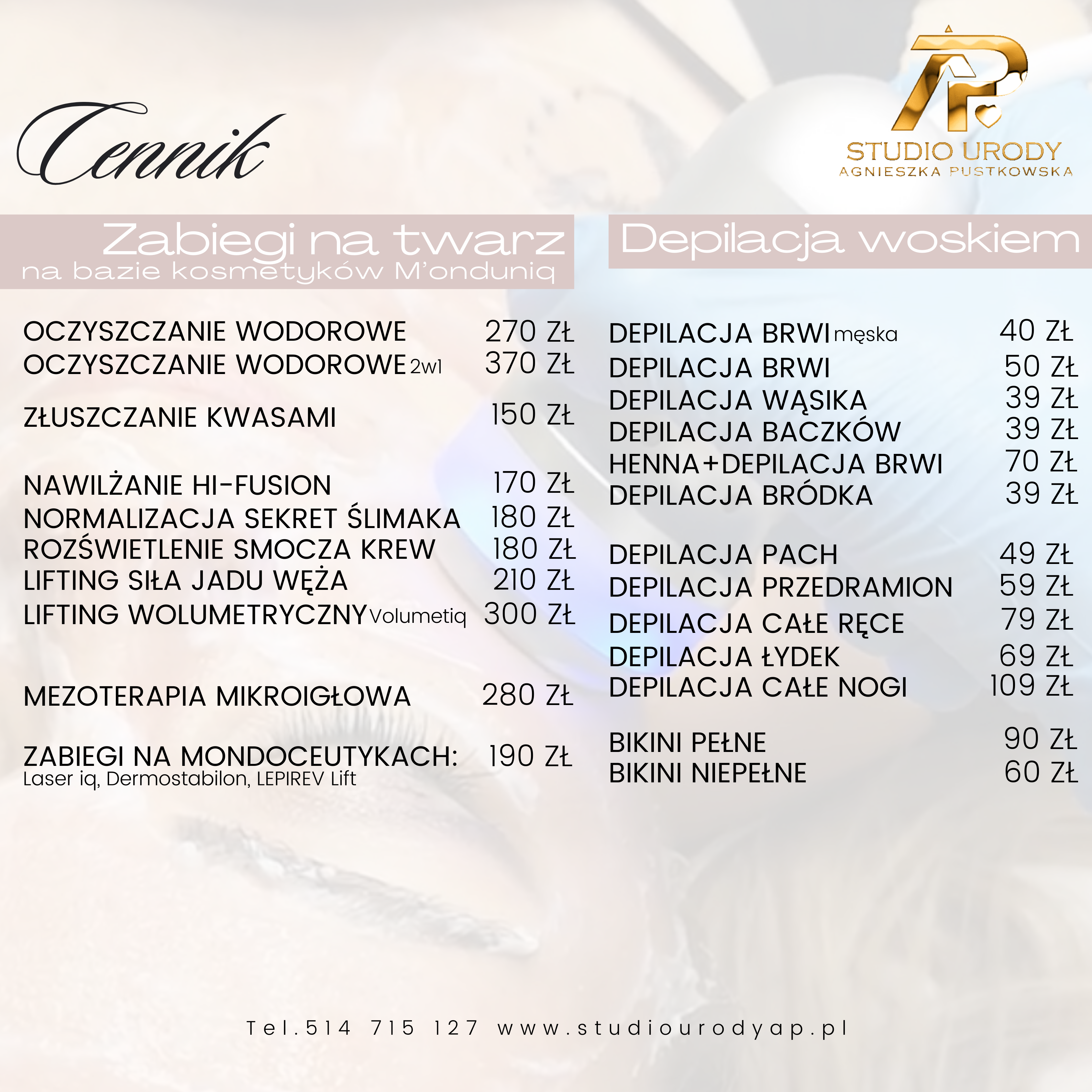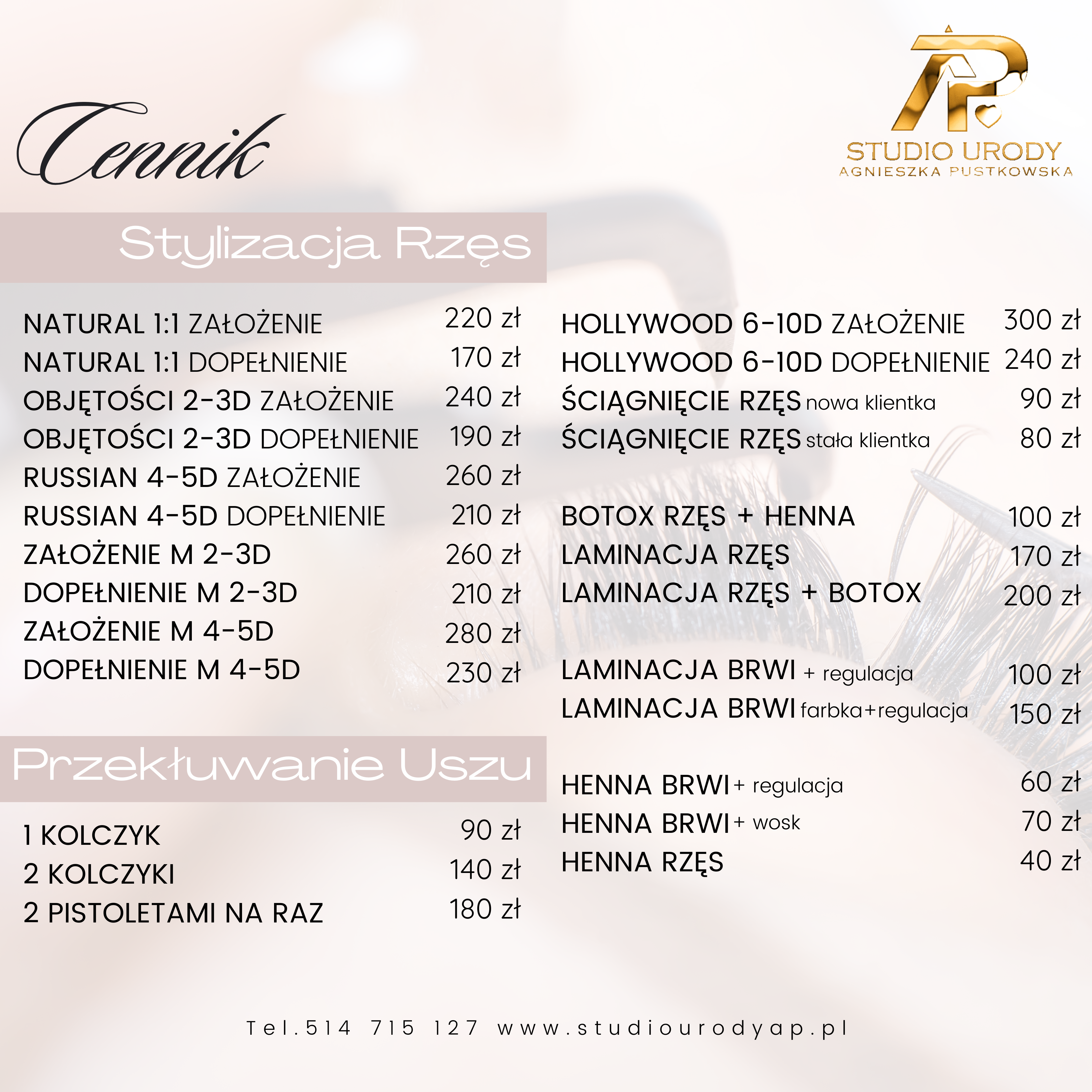 Studio Urody AP Agnieszka Pustkowska to nie tylko salon zlokalizowany w zacisznym i kameralnym miejscu na mapie w samym sercu Tczewa. To przede wszystkim zespół sprawdzonych zaangażowanych w wykonywaną pracę ludzi. Nasze priorytety to profesjonalizm, skuteczność, bezpieczeństwo, a przede wszystkim Państwa satysfakcja z otrzymanych efektów.